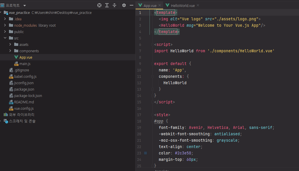 App.vue는 메인페이지 여기에있는 코드들을 HTML로 바꿔서 public/index.html로 옮겨서 브라우저에 띄워줌
