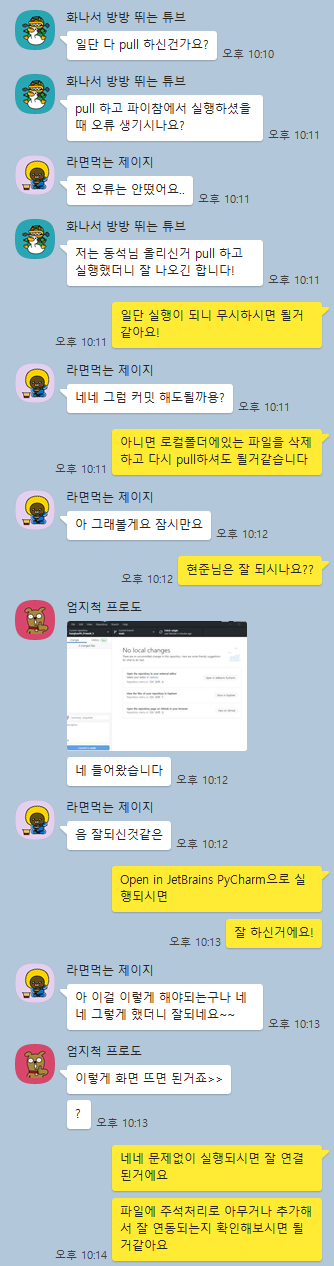 늦은 밤에 다들 자기 일처럼 모르는 것을 서로 가르쳐주고 의견을 나누는 것 을 보니 정말 팀을 잘 만났다고 다시 한번 생각이 들었다.